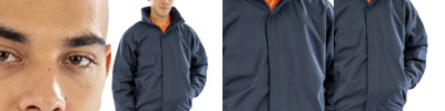 StormDri 4000 polyester with PVC coating. Fleece lined body and polyester lined sleeves.Waterproof 6000mm with taped seams.Windproof.Concealed adjustable hood.Full length zip with tear release storm flap.Inner media pocket.Two front zip pockets.Part elasticated adjustable cuffs.Part elasticated hem.Cut out label.Access for decoration.