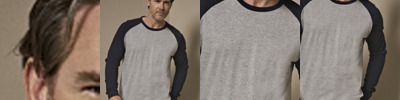 Body 85% cotton/15% viscose. Sleeves 100% ringspun combed cotton. Fitted style.Contrast ribbed collar with elastane.Contrast raglan sleeves.Side seams.Cuffed sleeves.Twin needle hem.
