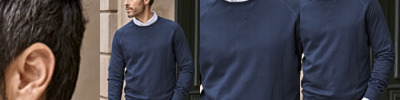 100% ringspun combed cotton.* Enzyme washed. Unbrushed. Loose fashion fit. 2x2 ribbed collar, cuffs and hem with elastane. Contrast taped neck. Stitched V detail at front neck.