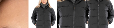 Fitted padded jacket. Honeycomb pattern with horizontal and vertical stitching. Piped edging. Zip fastening and two covered zip side pockets. Underside is lined with an open trim pocket useful for carrying mobile devices. Access point to inner jacket for easy embellishment. Elasticated cuffs and hem. High neck collar stand with attached hood. Product contains no branded neck label.* Removable Kimble or looped garment tags. Inner seam label holds important product information on one label with a second label containing brand information which can be cut-away.