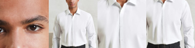 65% polyester/35% cotton poplin. Easy care fabric.Semi-fitted.Stiffened formal cut away collar.Two button closure on collar stand.Back yoke.Two button adjustable cuffs with option for cuff links.Curved hem.Easy cut out neck label.