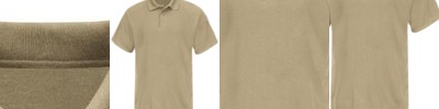 5 oz./yd2 / 172 gsm, 100% polyester face plaited to 60% polyester, 40% cotton back (total overall garment 61% polyester, 39% cotton); Proprietary dual-sided mesh pique knit constructed of fine denier wicking polyester on the outside and soft-as-cotton wicking blend on the inside; Moisture-wicking performance with UV 15-39 protection; Three-button placket; Dyed-to-match buttons; Matching flat-knit collar with contrast double tipping; Side vents; Active fit; Easy care;