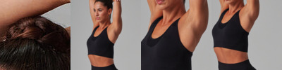 Seamless bra with removable padded cups and racerback. Self- fabric mesh inserts on front straps, V insert on front and on racerback panel. Self-fabric binding around neck, armholes and back. Tombo tear-out label.