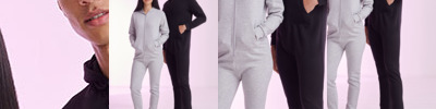 80% cotton/20% polyester.* Brushed back fleece.Slim fit.Two panel hood with single jersey lining.Taped back neck.YKK zip front opening with chin guard.1x1 ribbed elasticated cuffs.Front pouch pockets with flatlock stitching.Cuffed leg ends.Tear out label.