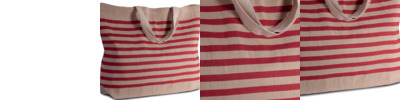 Jute canvas/cotton. Carry/shoulder straps (55cm long).Contrast stripes.Capacity 52 litres.