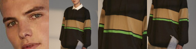 - Front coverstitched 1x1 baby rib-knit set-in collar