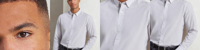 Yarn dyed fabric creating a gingham pattern. Long sleeve with single button cuff and sleeve guard. Narrow soft collar with button-down options on the underside. Semi fitted. Easycare fabric.