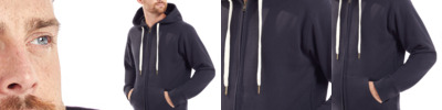 80% organic cotton/20% polyester. Organic or in-conversion to organic cotton. Soft peached fabric with brushed inner. Drop shoulder style. Lined hood with flat natural drawcord and brass effect tipping. Taped neck. Full length brass effect YKK zip. Front pouch pockets with flatlock stitching. Deep ribbed cuffs and hem. Tear out label.