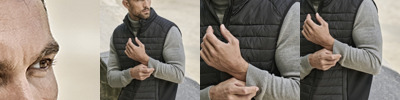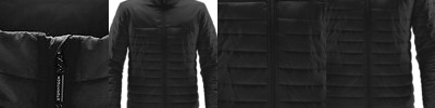 300T polyester outer. Polyester padding and lining.Showerproof.Fitted style.Soft shell side panels.Full length low profile zip with chin guard and inner zip guard.Bound elasticated armholes.Inner zip media pocket.Two front zip pockets.Drawcord hem.Branded zip pulls.Zip access for decoration.