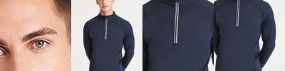 86% polyester/14% elastane. Cool-Flex™ four-way stretch fabric with quick dry, wicking properties.Active fit.Stand up collar.Reflective tab on back neck.Raglan sleeves.Zip neck with chin guard and reflective detail.Side panels.Bound cuffs with thumbholes.Twin needle hem.Tear out label.
