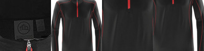 86% polyester/14% elastane. Cool-Flex™ stretch fabric with quick dry, wicking properties.Active fit.Stand up collar.Reflective tab on back neck.Raglan sleeves.Zip neck with chin guard and reflective detail.Side panels.Bound cuffs with thumbholes.Twin needle hem.Tear out label.