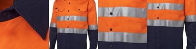 100% Cotton for 100% comfort,190gsm double pre-shrunk drill,Complies with Standard AS/NZS 4399:1996 for UPF Protection (UPF 50+),Complies with Standards AS/NZS 1906.4:2010 and AS/NZS 4602.1:2011 Day and Night,Two-piece collar,Two front pockets with button-down flaps and pen insert,Curved hem with back tail styling,All pressure points bar tacked for extra strength and durability
