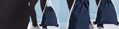 300D Polyester. Tearaway label for ease of rebranding. Hidden stash pocket. Chunky draw cords. Water-resistant fabric.