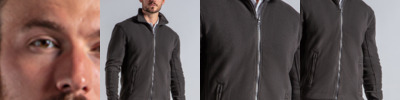 100% polyester. Unlined.Modern unisex fit.Full length zip.Self fabric side panels.Two front zip pockets.Bound cuffs and hem.