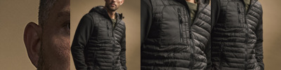 300T polyester outer. Polyester padding and lining.Showerproof and breathable.Fitted style.Grown on adjustable hood.Soft shell sleeves.Full length zip with chin guard and inner zip guard.Right chest zip pocket.Inner zip media pocket.Two front zip pockets.Elasticated bound cuffs and adjustable hem.Branded zip pulls.Zip access for decoration.