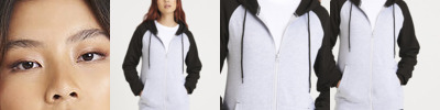 Twin-needle stitching detail. Contrast raglan sleeves. Double fabric hood. YKK plastic zip. Contrast flat lace drawcords. Spilt kangaroo pocket. Ribbed cuffs and hem. Soft cotton faced fabric creates ideal printing surface. Simple tear-out label makes it perfect for rebranding. Brushed inner fleece.