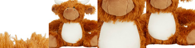 100% polyester. Soft plush brown highland cow.Contrast horns and tummy.Sewn eyes.Removable inner pad.Zip access for decoration onto front panel.Suitable for embroidery, print and sublimation.