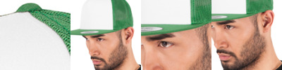 Classic 5-panel snapback. Contrast plastic snap. Hard buckram. Green undervisor. Contrast eyelets, visor, and top button. Ideal for screenprinting.