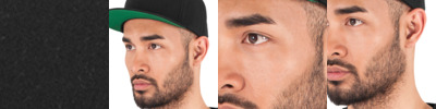 100% cotton. 5 panel.High profile.Stitched ventilation eyelets.Structured front panel.Flat peak.Black and navy have green underpeak.Plastic snapback size adjuster.Authentic visor sticker.