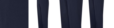 100% Polyester mechanical stretch fabric,constructed adjustable waist with belt loops,Two front slant pockets, front fob packet and two back jet pockets,Utility (key chain) belt loop at right pocket side seam,Large turn up at hem for length adjustment,Fully tailored styling to allow for further alteration,Size 18+ have elastic inserts at side seam