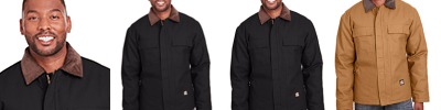 10 oz., heavy-duty cotton duck; Heavyweight quilt-lined taffeta liner; Water-repellent finish; Triple-needle stitched main seam; Heavy-duty brass zipper with storm flap; Collar snaps for optional hood; Two chest pockets with hook/loop closures; Pleated elbows and action back; Knit cuffs and waistband; Manufactured in a LEED (Leadership in Energy and Environmental Design) certified factory;