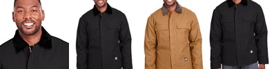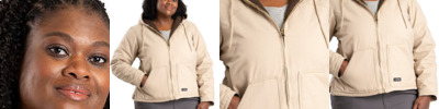 10 oz., heavy-duty cotton duck; Heavyweight sherpa-lined; Heavy-duty brass zipper; Side vents with snap closure; Triple-needle stitched main seams; Extended back for added warmth; Pleated elbows and action back;
