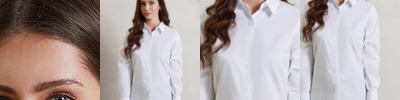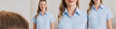 Ladies signature Oxford long sleeve Easycare blouse with wrinkle free finish for a smart and professional appearance. Soft collar styling. Rounded bottom hem. Fitted styling with bust and back darts. Pearlised buttons on light blue and white shirt, self c