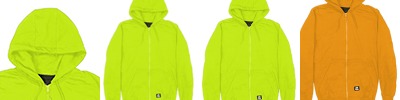 9 oz., 100% polyester fleece; 5 oz., lightweight 100% polyester mesh lining; ANSI/ISEA 107-2015 type R class 3 certified; 2" reflective tape; Nylon front zipper; Double layered three-piece hood; Oversized front pockets; Knit cuffs and waistband;