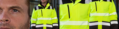 Two layer mechanical yarn bonded soft shell. Polyester outer, in transition to using recycled polyester.Waterproof 8000mm, breathable 3000g and windproof TPU mid-layer membrane.Polyester filling and quilted lining.Conforms to EN ISO 20471: 2013 + A1: 2016 class 2.RIS-3279-TOM (orange only).Taped seams.Stand up collar.Concealed adjustable hood.Hanging loop.Full length zip with tear release and studded storm flap.Two reflective printed bands around the body, sleeves and one on each shoulder.Right chest zip pocket.Two front pockets.Inner pocket.Black contrast shoulders, lower sleeves and body.Tear release and part elasticated cuffs.Tag free.Access for decoration on left chest and hem.