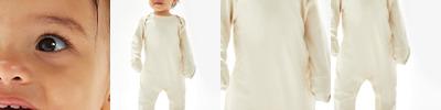 100% organic combed ringspun cotton. Organic or in-conversion to organic cotton.Envelope neckline.Built in scratch mitts.Self colour popper closure around legs.Integrated feet.Tear out label.