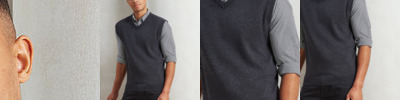 Cotton rich with a fine 12 gauge knit. Sleeveless with ribbed detail on the arm holes, v-neckline and hem.