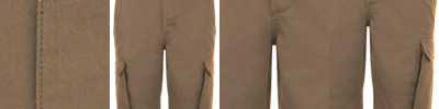 100% cotton twill. Casual style.Belt loops.Button fly.Two front pockets.Two side cargo pockets with button flap.Rear pockets with flaps.
