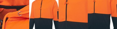 80% Polyester for durability, and 20% Cotton for comfort,280gsm fleece fabric,Complies with Standards AS/NZS 1906.4:2010 AS/NZS 4602.1:2011 Day Only,Contrast panel at body and sleeves,Rib basque sleeve cuffs for improved durability,Two front pockets and pen pocket on sleeve,Easy care fabric,hood with drawcord