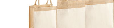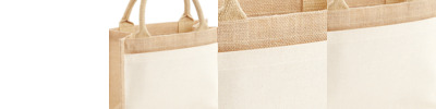 Laminated jute. Cotton carry handles (40cm long).Cotton canvas front pocket.Capacity 14 litres.