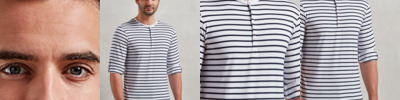 82% polyester/14% viscose/4% elastane. Single jersey.Easy care fabric.Soft and stretchy.White/navy has yarn dyed stripe.Ribbed bound collar and cuffs.Three button placket.Roll-up sleeves with button and tab.