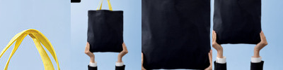 Two-tone cotton shopper. Short handles, 35 x 2.5cm. Inside hemmed sewing. Cross-stitches at handle. Perfect print surface.