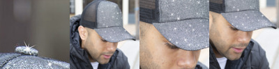 5-panel cap (4 mesh/1 fabric). Sparkle fabric stiffened front panel and peak. Mesh back with ponytail hole. Tear-release adjuster. Semi-curved fabric peak made from recycled plastic. Tear-away label.