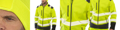 Printable ripstop fabric with durable water-repellent finish. Breathable. Windproof. Black colour contrast in strong Oxford nylon masks grime. Fleece lined. Soft-feel, supple reflective printed safety body bands. YKK zip. Stand-up collar. Zipped pockets. Chin guard. Open cuff. Hangtag. Ready to brand - tag free. EN ISO 20471:2013+A1-2016 - Class 2. RIS-3279-TOM - Class 2 (Orange only).