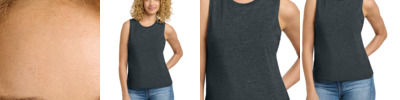 4.3 oz., 52% cotton 48% polyester, 30 singles; Ultra-fine cotton blend; Fashion fit; Side seams; Racerback | exposed shoulders; Tear-away label; Made in a w.r.a.p. certified factory;