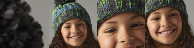 100% soft spun acrylic. Heavy multi-yarn cable knit design. Bold four colour stripe design. Shearling thermal band for extra warmth. Cuffed design. Non-removable pom pom for added safety. Tear out label.