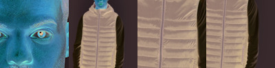 Polyamide outer. Polyester padding.Contrast polyester lining.Warm and ultra-lightweight.Grown on hood with bound opening.Full length contrast zip with chin guard and inner zip guard.Two front zip pockets - right with fluorescent media pocket and ear phone cord access.Bound elasticated armholes and hem.Packs away into unbranded bag.