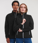 Three layer soft shell. 94% polyester/6% elastane outer.Waterproof 5000mm, breathable 5000g/m² and windproof hydrophobic membrane.Part honeycomb jersey lining, part fleece lining.Bionic-Finish® Eco treatment.Fluorine and PFC free.Classic fit.Stand up collar.Full length contrast zip with chin guard and inner zip guard.Hydroshell underarm ventilation panels.Right chest covered zip pocket.Inner mesh media pocket.Left sleeve zip pocket.Two contrast front zip pockets.Tear release adjustable cuffs.Access for decoration.