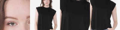3.5-ounce, 65/35 poly/combed ring spun cotton, 40 singles Solid colors: Black, White, Shiraz, Smoked Paprika and Stonewash Green (the remaining colors are heathers) 1x1 rib knit neck Double-needle edge stitch at neck Shoulder to shoulder taping Satin label Side seamed