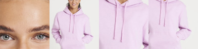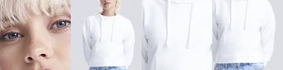 80% ringspun cotton/20% polyester.* Soft cotton faced fabric.Brushed back fleece.Drop shoulder style.Ladies fit.Double fabric hood with self colour flat lace drawcord.Front pouch pocket.Cropped length.Ribbed cuffs.Overlock stitching on hem.Tear out label.