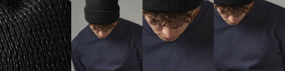 100% acrylic. Double layer knit.Cuffed design.Self colour pom pom with highly reflective fibres.Tear out label.