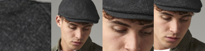 80% wool/20% viscose. Melton wool blend.Fully lined.Stitched-down peak.Self fabric strap with tri-glide buckle.Tear out label.