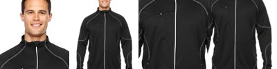100% polyester brushed back fleece, 7.4 oz./yd2/250 gsm; Moisture wicking performance á; chin guard; front reverse coil zipper with reflective asymmetric piping; chest pocket with reverse coil zipper and zipper garage; contrast coverstitch detailing; lower pockets with reverse coil zippers;