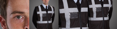 100% recycled polyester (some colours in transition). Front zip closure.Two reflective bands around the body and one over each shoulder.Left chest media pocket.Right chest ID pocket.Pen pockets and D-ring.Two front pockets with flaps.Large area on reverse for decoration.