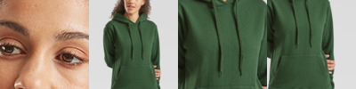 80% cotton/20% polyester.* Drop shoulder style.Ladies fit.Double fabric hood with self colour drawcord.Front pouch pocket.Shaped side seams.Cotton/Lycra® ribbed cuffs and hem.Twin needle stitching.Cut out label.