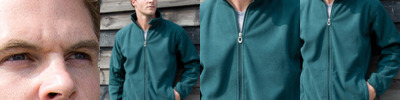 Three layer bonded soft shell. 97% polyester/3% elastane combined pile (fleece outer) soft shell.Waterproof 7000mm, breathable 3000g and windproof TPU membrane.Polyester/spandex mesh lining.Full length zip with neck guard.Two front zip pockets.Contrast panel feature.Elasticated bound cuffs and hem.Cut out label.Access for decoration.